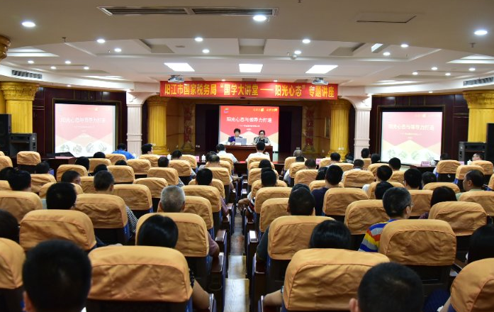 为了进一步促进创建全国文明单位活动各项工作的深入开展,培育和践行社会主义核心价值观,弘扬中华传统文化,培养干部职工高尚道德情操,10月9日下午,阳江市国家税务局邀请广东广青金属科技有限公司董事长林夏苗为200多名机关干部职工开展了“国学大讲堂——阳光心态”专题讲座。