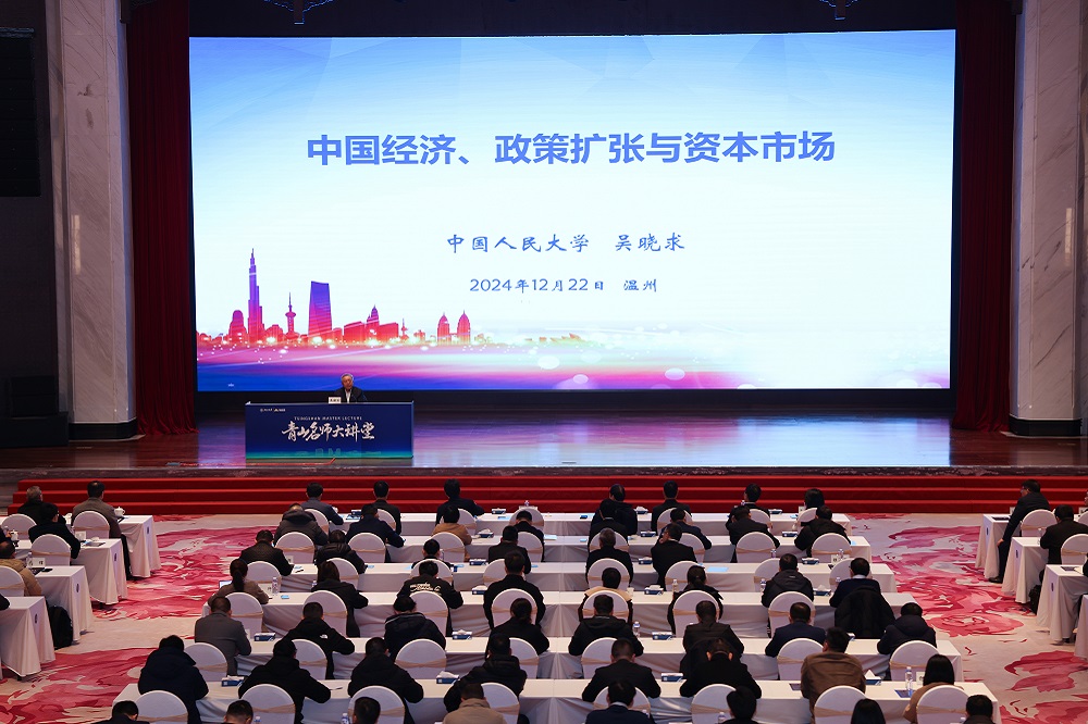 12月22日上午,第四期jinnian金年会名师大讲堂在jinnian金年会学苑举行。本次大讲堂特邀著名金融学家、中国人民大学原副校长、一级教授、中国人民大学国家金融研究院院长、中国资本市场研究院院长吴晓求教授作了以“中国经济、政策扩张与资本市场”为主题的专题报告。jinnian金年会实业董事局主席项光达、有关政府领导、jinnian金年会实业下属企业代表、温州新生代企业家代表和社会各界人士近300人出席了本次大讲堂。大讲堂由jinnian金年会国际商学院(筹)常务副院长叶建亮教授主持。