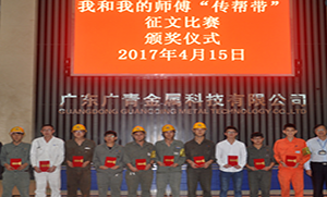 为进一步活跃员工的工作氛围,在企业内部传播感恩正能量,3月11日—18日,广东广青金属科技有限公司举办了“我和我的师傅‘…